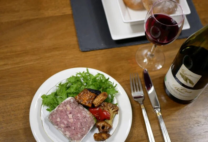 シュブランさんの2020年オーガニックボジョレーヌーヴォーは、酸も糖もしっかりとしていて香りも華やか。間違いなく最高の出来の一つ。パテとの相性はバッチリと決まった。