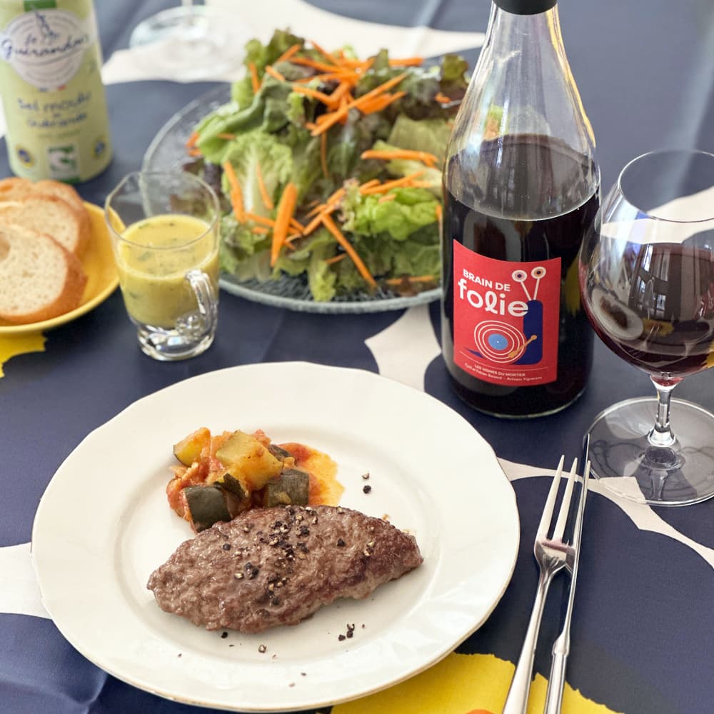 様々な食事にあわせやすい。シャルキュトリー、肉豆腐、鶏レバーのサラダ、鶏肉の濃厚ブルーチーズソース