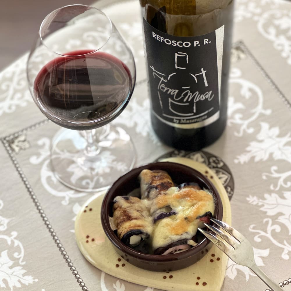 ヴェネト地方の土着品種「レフォスコダルペドゥンコロロッソ」を使った赤ワインです。