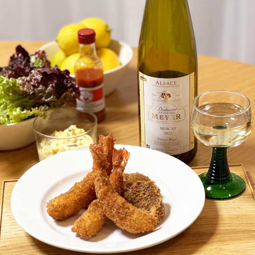 This dry wine with a gorgeous aroma is made from the noble Muscat grape variety, produced in Alsace, which is famous for its white wines. The aroma of Muscat fills your mouth, giving it a taste that is reminiscent of eating juicy fruit. This organic wine is sure to get the conversation flowing.