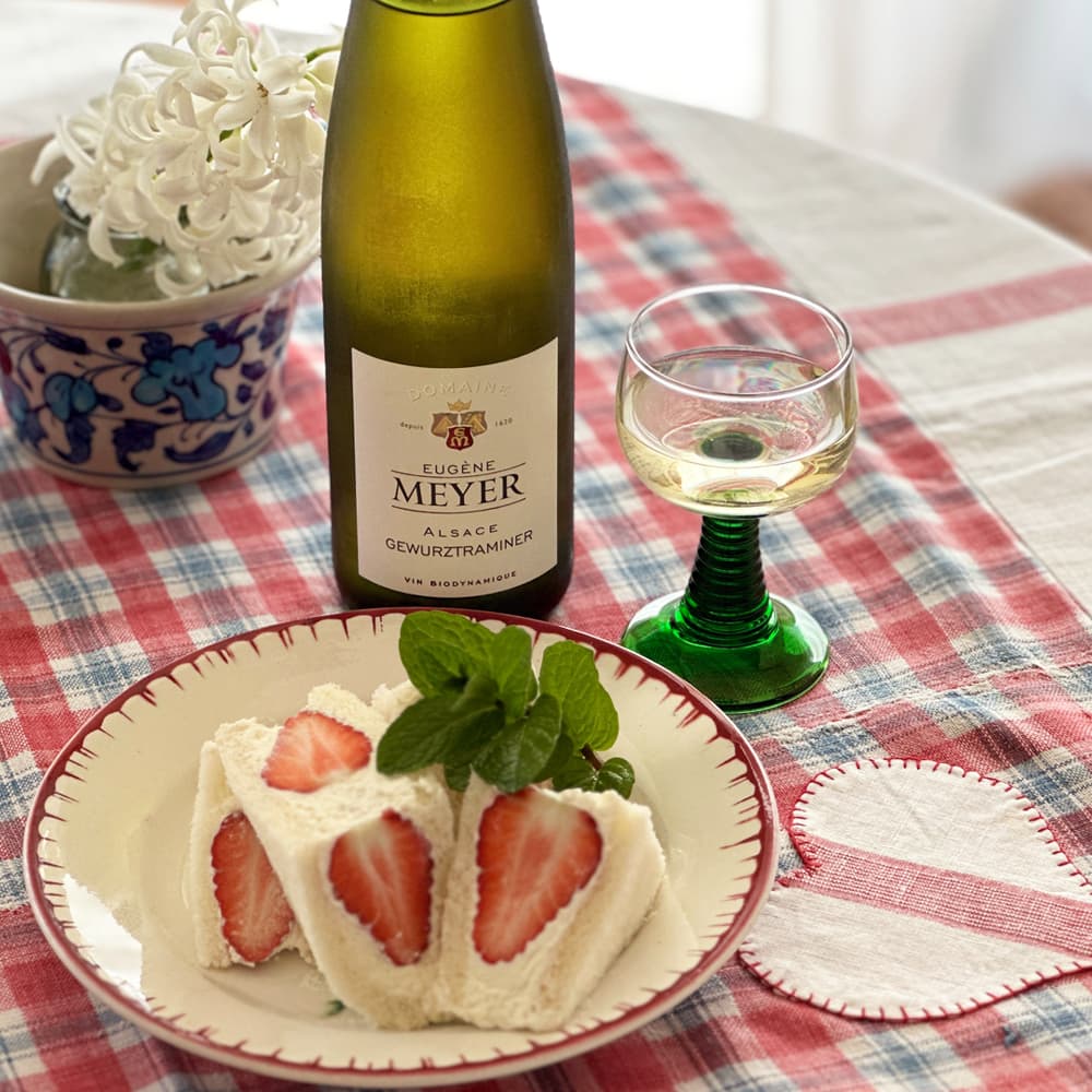 This dry white wine is made in Alsace, which is famous for its white wines, and uses Gewürztraminer. As the name "Gewürz" means spice in the local language, the noble aroma with nuances of lychee and rose is like perfume. This wine is often eaten with Munster cheese sprinkled with cumin seeds in Alsace. This organic wine will make you want to enjoy its gorgeous aroma.