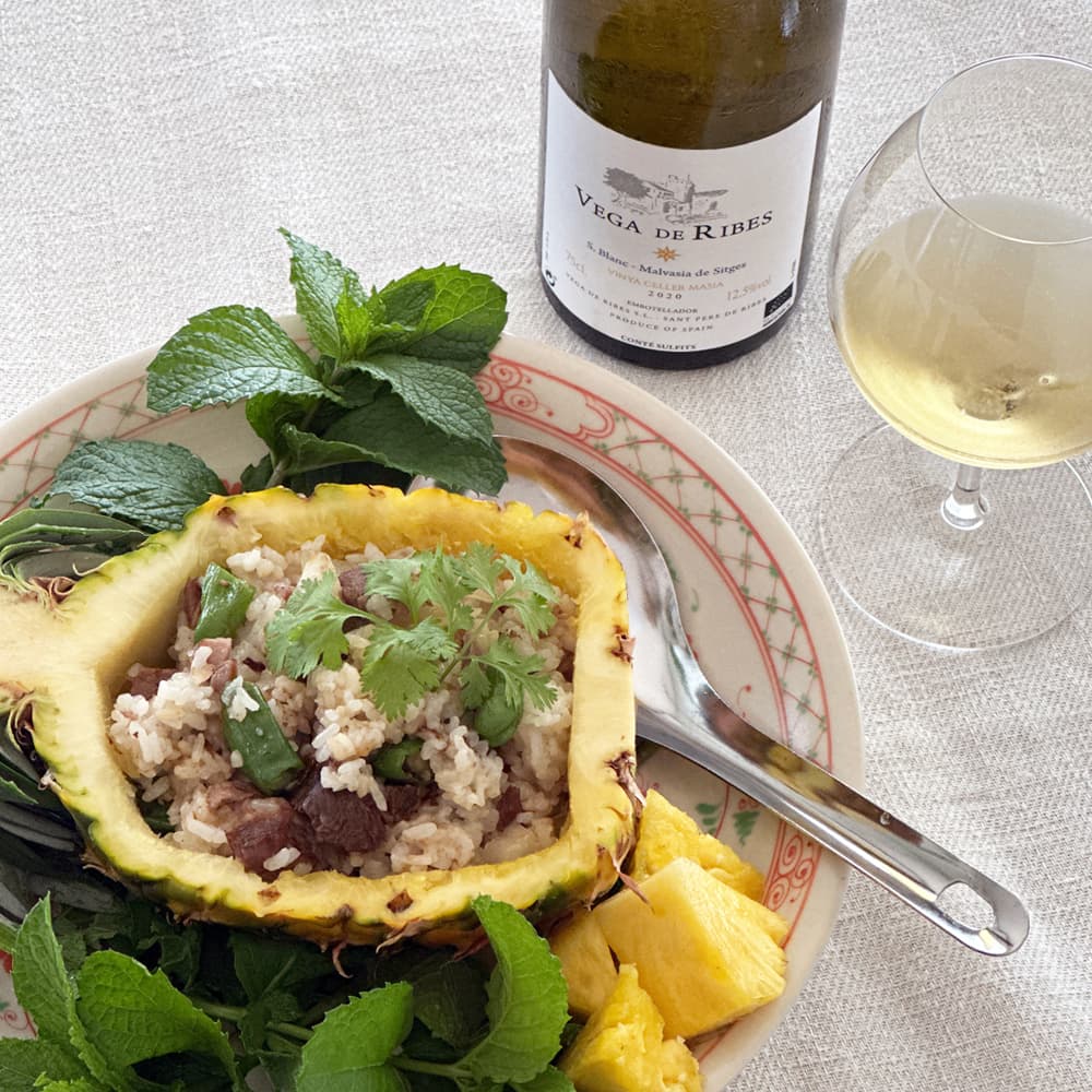 This dry white wine is made in Penedès, a famous wine-producing region near Barbecue in the Catalonia region of Spain. It is made using Sauvignon Blanc, and has a fruity flavor with a moderate maturity. It is an organic wine with a fresh impact that goes well with dishes such as paella and chicken sausage.