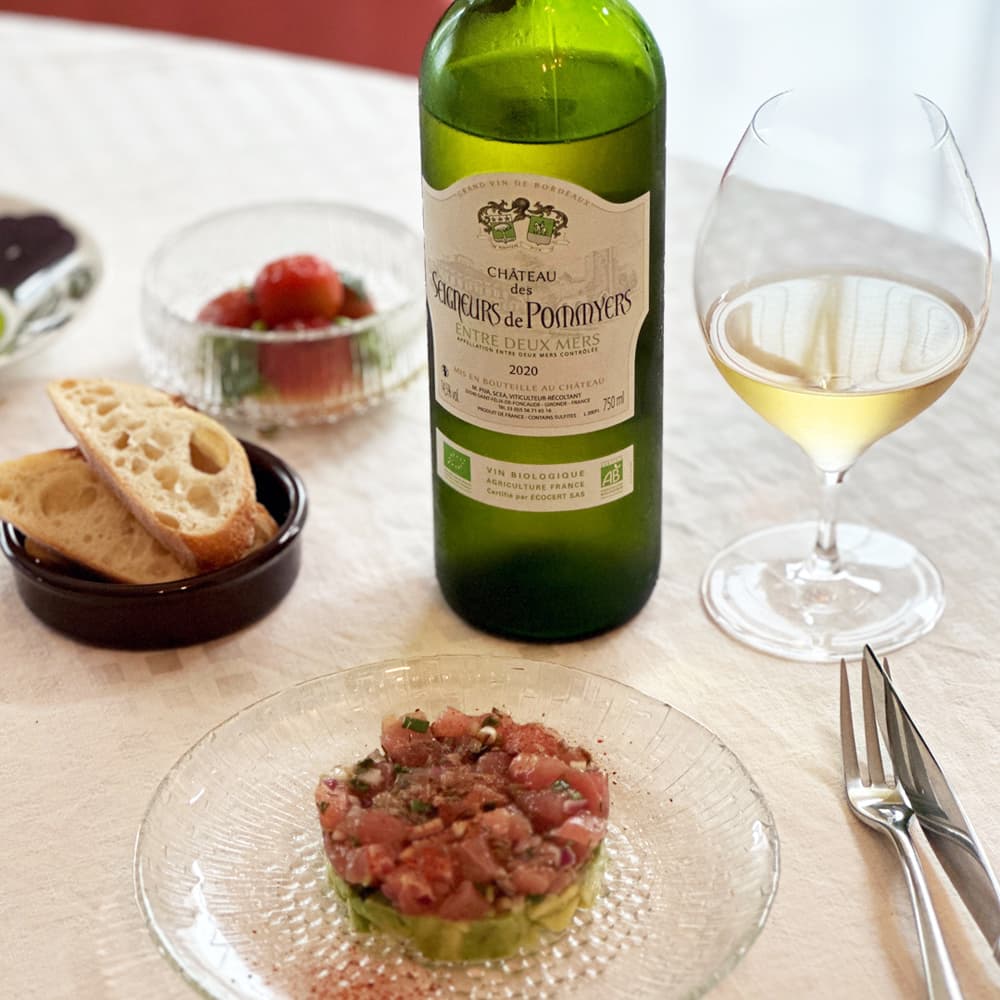 A full-bodied dry sparkling wine from Bordeaux. Made from a blend of Semillon and Sauvignon Gris, and fermented in the same bottle as Champagne, Cremant has delicate bubbles and a good drinkability. It has a gorgeous aroma of pear, apple, and white flowers. It is a refined organic wine with a fresh fruitiness, a refreshing herb flavor, and a firm minerality.