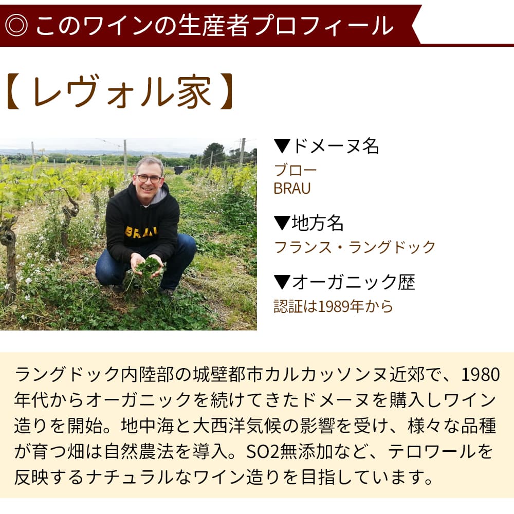 This dry white wine was made in a field overlooking Carcassonne, a World Heritage Site in Languedoc, southern France. Made with 100% Chardonnay, it has a citrus aroma and fruity aromas of white peach and apricot. With its clean acidity and mild fruitiness, it goes perfectly with Japanese food such as yudofu.
