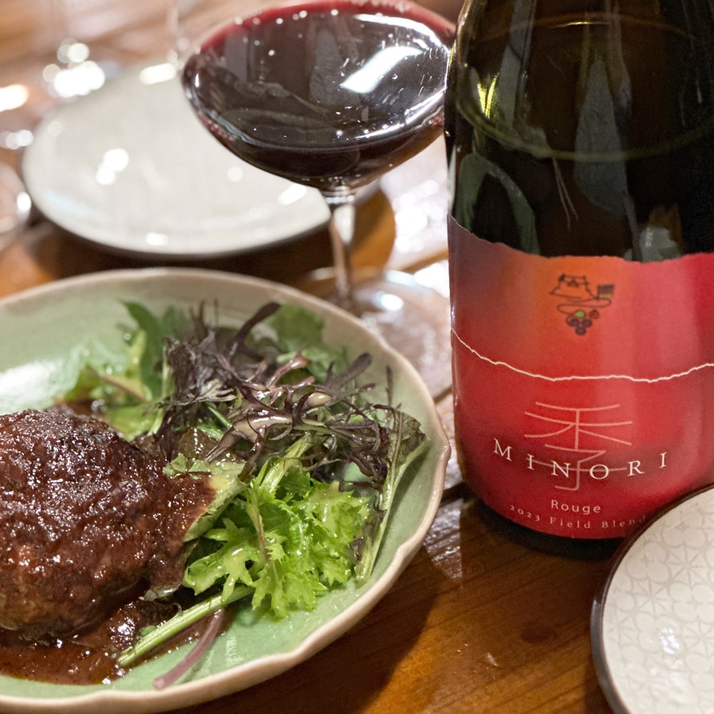 2024年ヴィンテージの赤ワインは、ガメイをブレンドすることで、よりジューシーな果実味と軽やかな飲み心地を引き出した仕上がり。軽く冷やしても楽しめるスタイルで、穏やかなタンニンとともに、滋味深く、土や和のニュアンスを感じさせる表情を持つ。