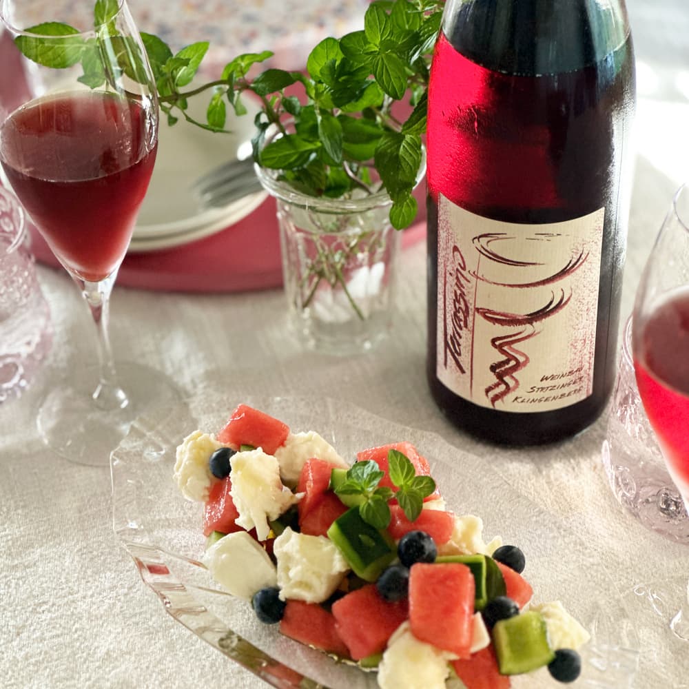 A slightly sparkling red wine from Germany. It has a gentle acidity and a subtle cuteness with aromas of fresh raspberries and cherries. It goes well as an aperitif, and can also be enjoyed with gazpacho, prosciutto, and puff pastry dishes.