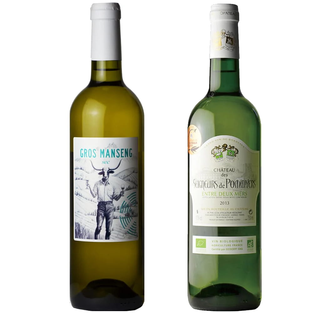 フランス南西地方のきりりとした辛口白ワインとフランスの銘醸地ボルドー産の白をセットにしました。酸味と果実味のバランスが取れたほどよいボリュームのグロマンサンセックにはあさりの酒蒸し、ミネラル感のあるボルドーには生ガキやつぶ貝の香草焼きがおすすめです。貝類を存分に楽しむディナーのお供にぜひご堪能ください。